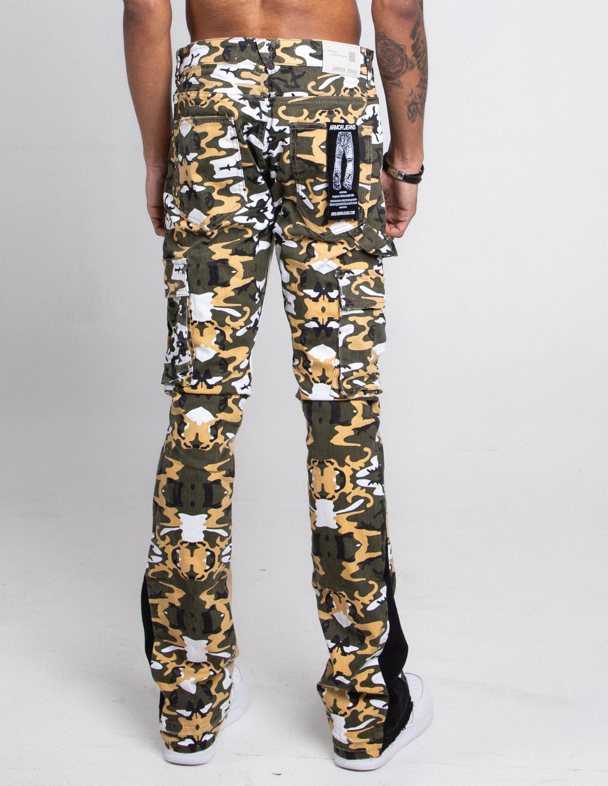 AJS699-10 CAMO STACKED CARGO PANTS