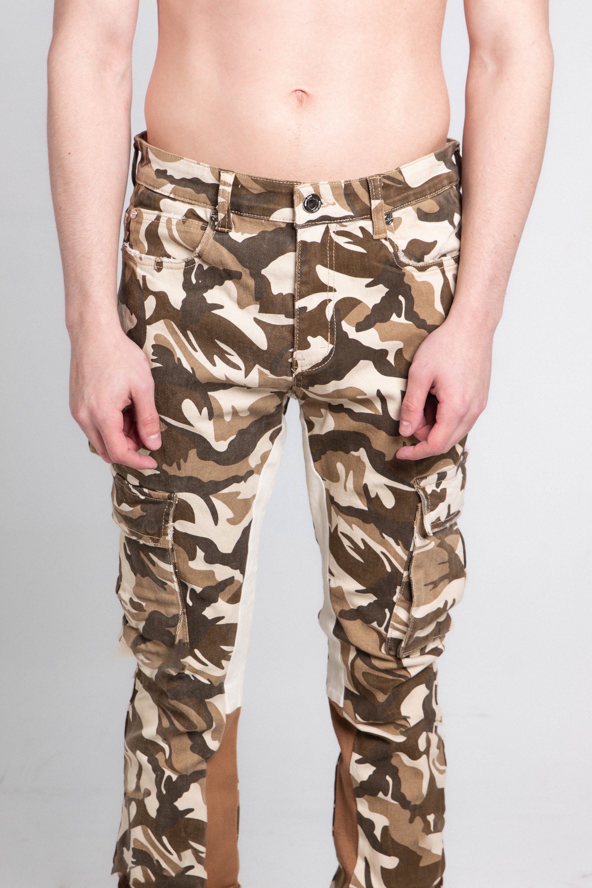 The Cargo Pants are designed with a stacked fit throughout with gusseting at the knee, cargo pockets at the side seam, a cinch-able waistband, zipper fly, and finishing off with elastic at the leg openings.