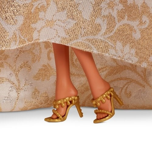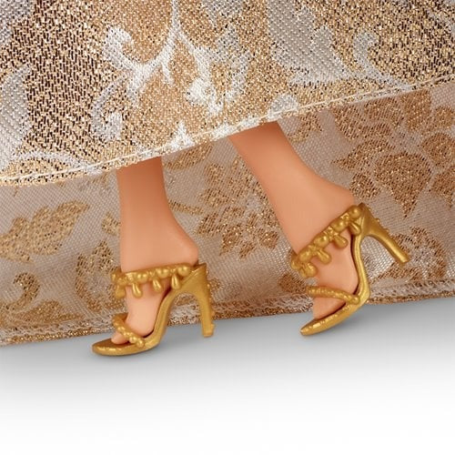 The 2025 Holiday Barbie doll shines like a star in and out of her packaging. Showcasing beautiful combinations of silver and gold damask print at the skirt, Barbie catches eyes in her gorgeous strapless gown, with a white, ruffle tulle trim at the collar. Barbie pairs her stunning gown with gold, drop earrings and pearlized gold heels. Her long beautiful, blonde hair and makeup complement her classic look. In packaging that's ideal for display, this collectible doll is for fans 6-year-olds and up. Includes doll stand and Certificate of Authenticity. Doll cannot stand alone.