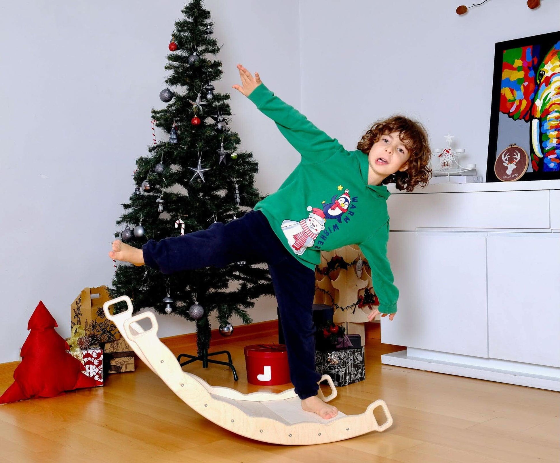 Introducing our Wooden Balance Board, a perfect Montessori Christmas toy designed for baby boys and girls. This innovative balance board, accompanied by a comfortable pillow, stimulates your child's vestibular system, which is essential for their development and learning journey.